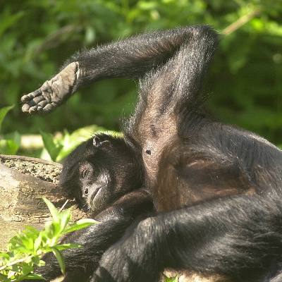 UiterlijkAan het lijf van de slingerapen is alles aangepast aan het leven in de bomen. Met hun gespierde staart, lange armen en het feit dat ze geen duimen hebben, slingeren ze met gemak en topsnelheid door het bladerdek. Door hun karakteristieke zwarte silhouet worden ze ook wel ‘spinaap’ genoemd. Bruinkopslingerapen onderscheiden zich van de rest door hun vlassige witte snor en baard.
