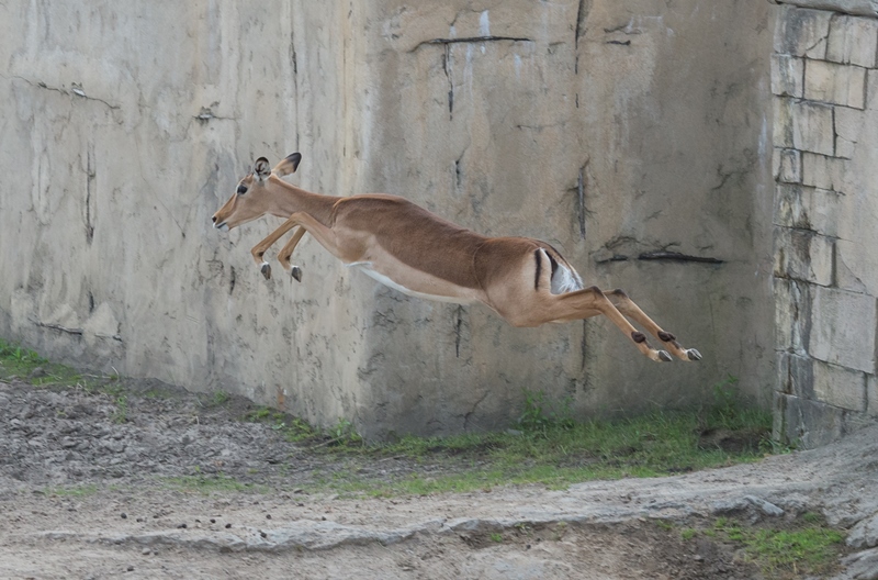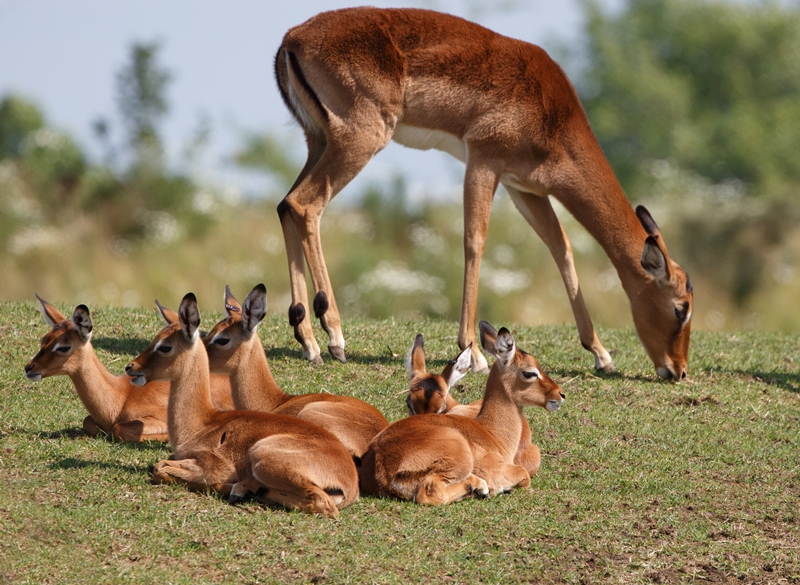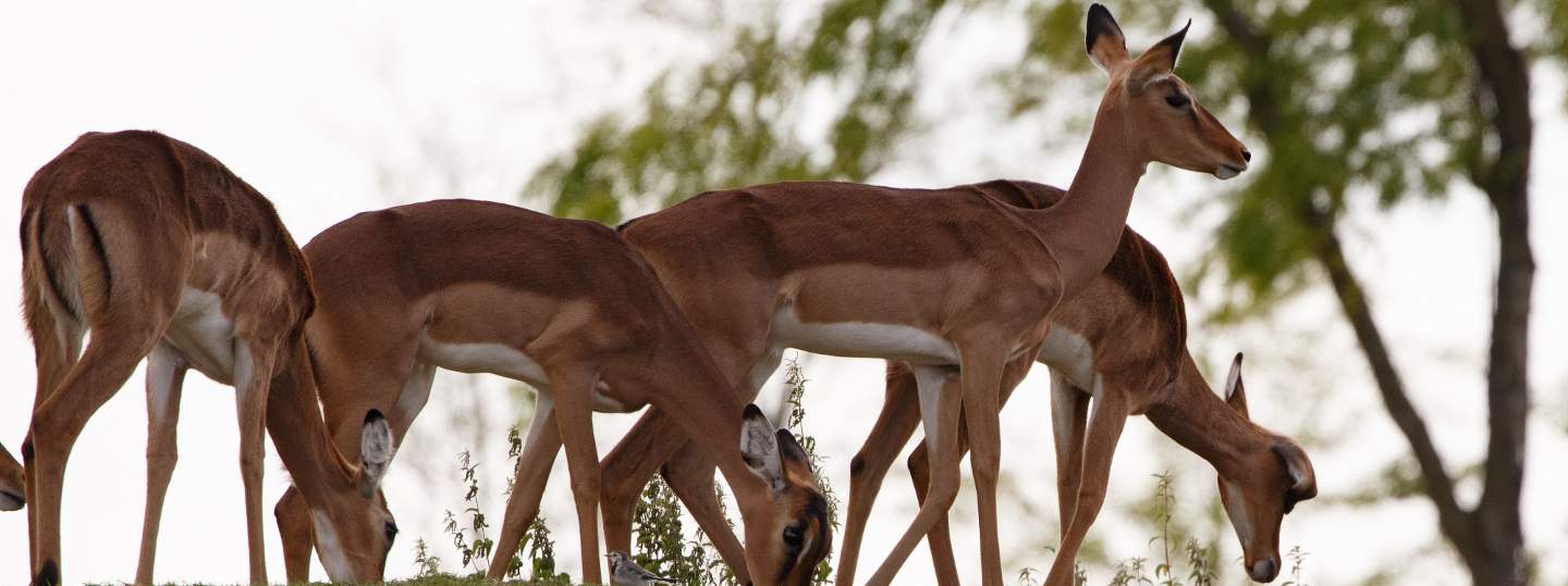 Wie niet sterk is, moet alert én snel zijn! Dat geldt zeker voor de impala’s (Aepyceros melampus) op de savanne. Hun enige wapens in de strijd tegen de roofdieren zijn snelheid en behendigheid. Dat is ook wel nodig aangezien de leeuwentroep aan de overkant altijd op de loer ligt. Heb je wel eens naar de zwarte strepen op hun billen gekeken. Deze lijken een M te vormen. Hierdoor worden ze ook wel de McDonald's van de savanne genoemd. Dat is pas echt fastfood!