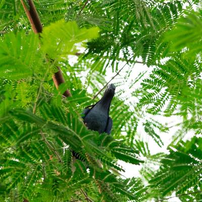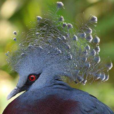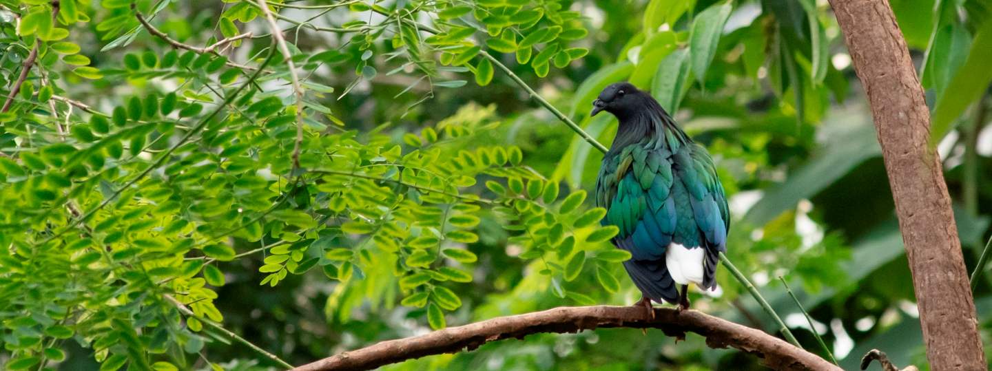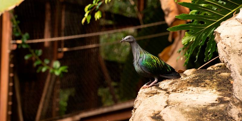 Deze “fancy” duiven scharrelen overal rond in Rimbula. Normaal gesproken zitten de manenduiven (Caloenas nicobarica) alleen in de bomen, maar als ze op zoek gaan naar voedsel wandelen ze gewoon tussen de bezoekers door op het terras! Hoe prachtig ze ook zijn, ze gedragen zich gewoon als echte duiven.