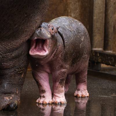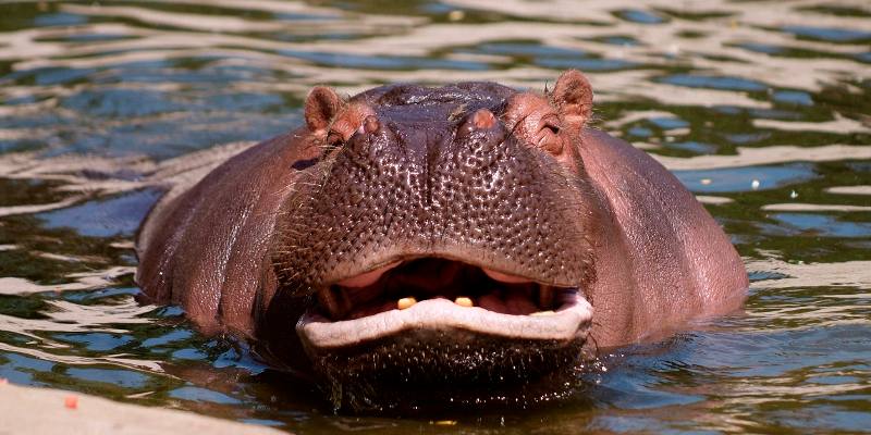 UiterlijkNijlpaarden zijn makkelijk te herkennen. Ze zijn groot, rond en hebben geen haar. Ook hun bek is gigantisch en heeft enorme hoektanden. Nijlpaarden zijn niet voor niks een van de gevaarlijkste dieren van Afrika. Met deze tanden bijten ze met gemak een 3 meter lange krokodil in tweeën.