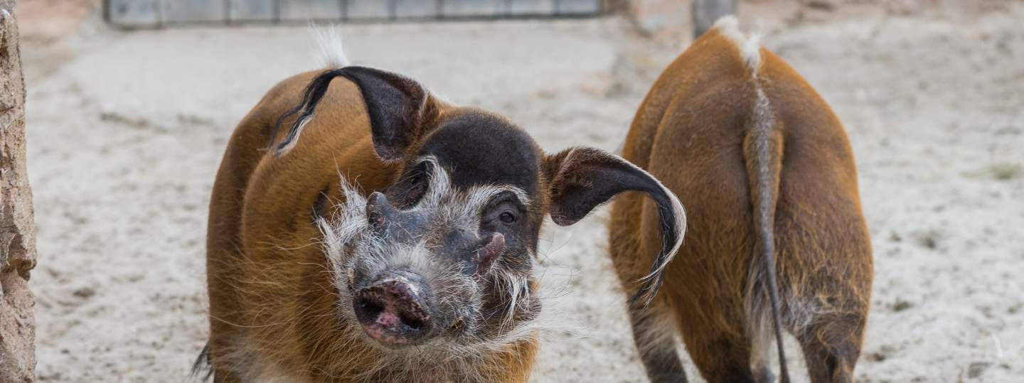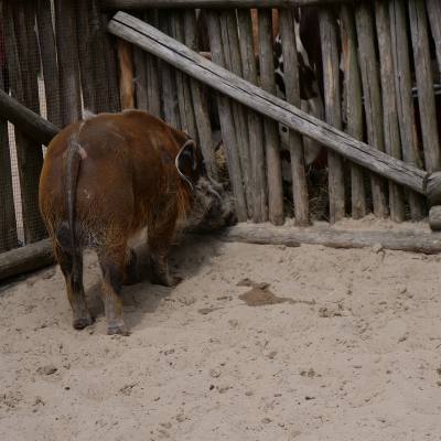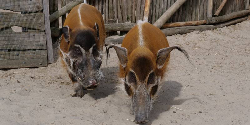 Heb jij ooit een oranje varken gezien? Nou, dat kan in de Zeboekraal in Serenga! Hier leven de penseelzwijnen (Potamochoerus porcus) naast de zeboes. De penseelzwijnen vinden het erg fijn om een modderbad te nemen, dus pas wel op dat je tijdens je bezoek niet in de spetterzone gaat staan.