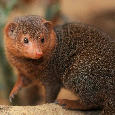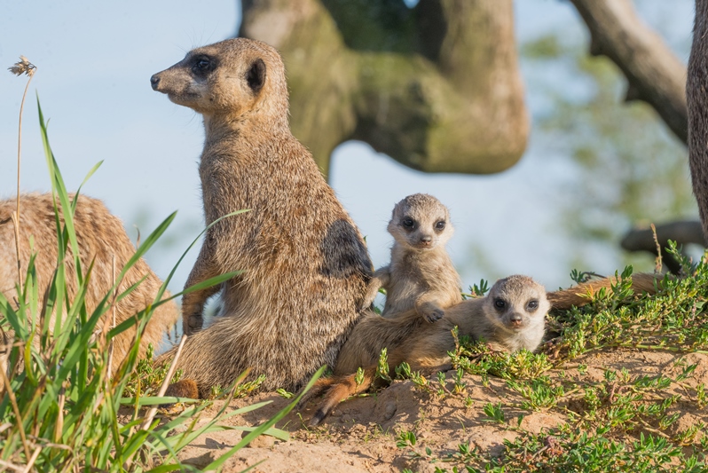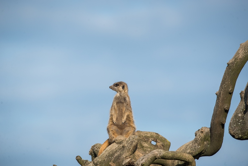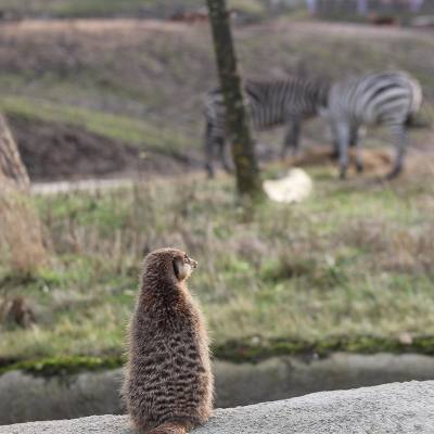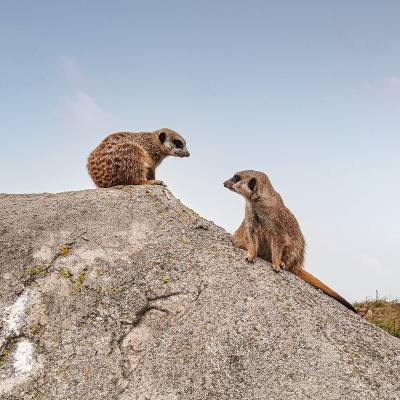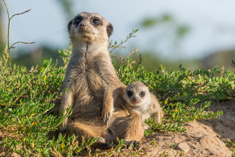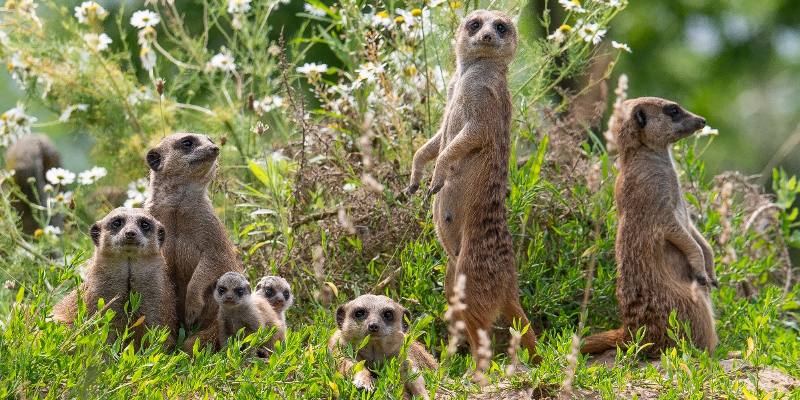 Voorbij de termietenheuvel op Serenga is een familie stokstaarten (Suricata suricatta) gevestigd. Zorg ervoor dat je rustig over het bruggetje loopt, misschien krijg je ze dan wel te zien. Maar maak geen onverwachte bewegingen of geluiden! Want als de stokstaarten schrikken, slaan ze alarm en schieten ze terug onder de grond.