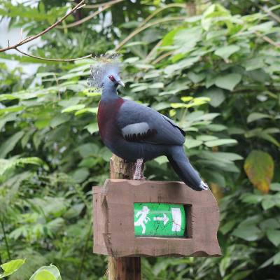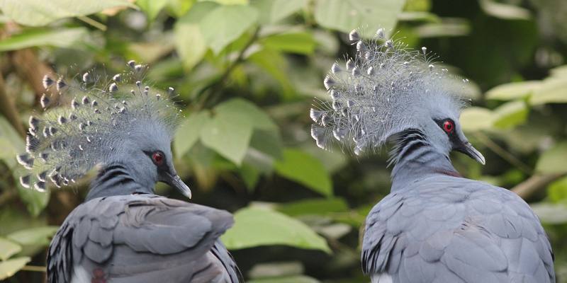 In de Birdy Bush lopen echte royalty’s. Met hun koninklijke uitstraling is het ook niet zo gek dat de Victoria kroonduif (Goura victoria) naar de Britse koningin Victoria is vernoemd. Hun gedrag is er ook naar, want deze vogels verwachten gewoon dat je een stapje opzij doet, wanneer zij over het pad paraderen.