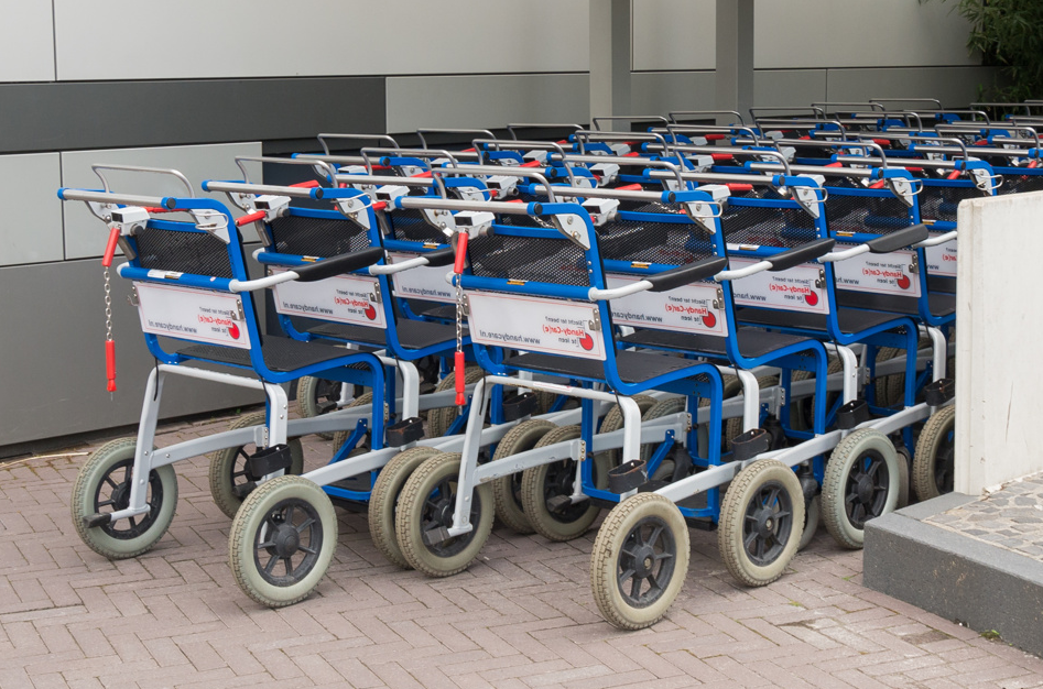 De rolstoel kan worden opgehaald bij de Informatiebalie, rechts voorbij de entreepoortjes.